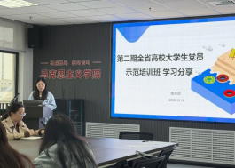 在第二期全省高校大学生党员示范培训班学习分享环节,2023级的张永珍同学生动讲述培训期间的经历与收获。结合延安之行的所见所感,她表示,通过课程学习与实践体验,能够将书本中的“延安精神”转化为砥砺前行的动力与“不负人民”的信念,并号召同学们在服务人民中绽放青春光彩。