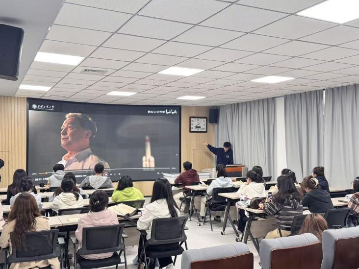 活动伊始,主持人白毅超简述了本次主题班会与团日活动的目的与意义,使同学们更加了解学校历史,厚植爱校荣校情怀,筑牢精神根基。随后,全体师生共同观看了西安工业大学2025年招生宣传片。镜头下,学校深厚的兵工底蕴、蓬勃的发展态势、丰硕的育人成果与师生昂扬的精神风貌徐徐展开,它清晰传递了学校与国家兵工事业同频共振的发展历程,聚焦学校科研团队的研究成果,一幕幕画面传递出学校以科研实力夯实国家发展根基的决心,让同学们深切感受到学校七十余载的峥嵘岁月与使命担当,强烈的归属感与自豪感在心中升腾。
